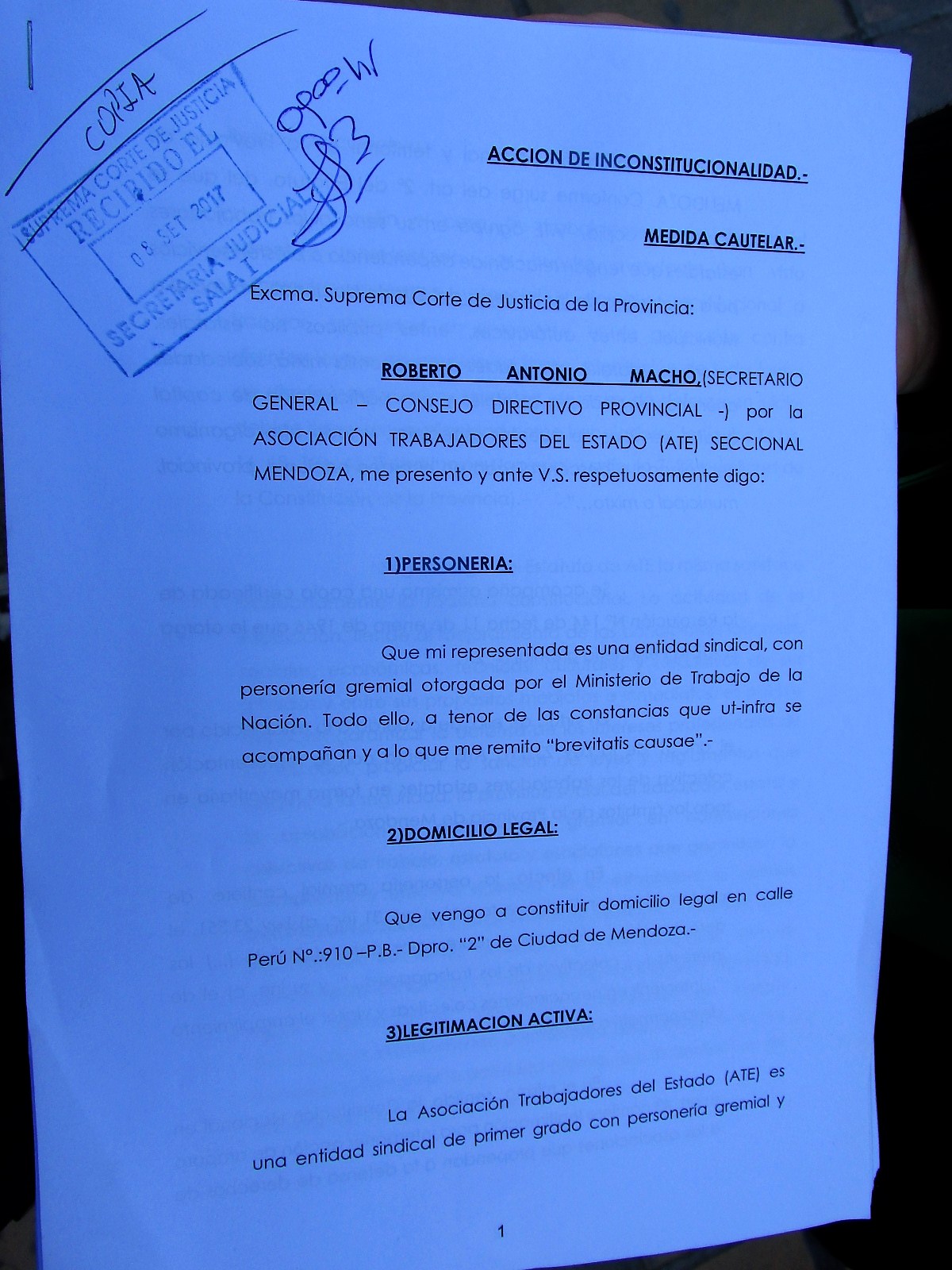 “Nosotros venimos a presentar una acción de inconstitucionalidad, junto con una cautelar frente a esto, porque es ilegal e inconstitucional lo que hace el gobernador Alfredo Cornejo. Los adicionales que tienen los trabajadores estatales están dados por ley, no por decreto. Por ende, está vulnerando la legislación provincial y también la nacional: la ley de paritarias nº 24185 y el decreto 955 (aplicación de paritarias)”, indicó el referente gremial.