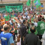 Desde la mañana, el Km 0 de Ciudad fue el epicentro donde confluyeron banderas, bombos y pancartas de todos los colores sindicales y centrales obreras, con un mismo reclamo general: la dignificación de salarios y condiciones de trabajo.