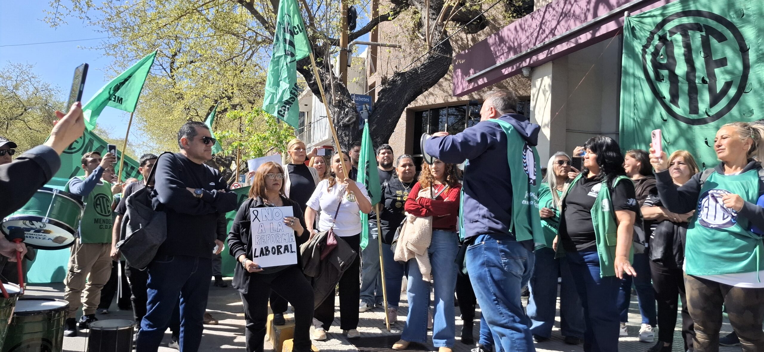 “Le estamos diciendo NO a la reforma laboral que quiere imponer el Poder Ejecutivo y exigimos la apertura inmediata de paritarias. Hay trabajadores que cobran $700.000 por 40 horas semanales. El gobernador Alfredo Cornejo no quiere pasar a planta a los más de 2.300 contratados y prestadores, porque los quiere mantener precarizados; él decide si son profesionales, o no, los Licenciados en Enfermería, ya que no los quiere reconocer ni cambiar de régimen; él quiere reformar los convenios colectivos de trabajo. Es decir, que con esta reforma está adaptando una ley a su medida, para decidir unilateralmente sobre las condiciones laborales y salariales de los compañeros y compañeras estatales”, exclamó Roberto Macho, Secretario General de ATE Mendoza, al detallar las principales reivindicaciones que nuestra asociación sindical y central obrera mantienen, en rechazo a la modificación del Estatuto del Empleado Público, que quiere impartir el Gobierno.