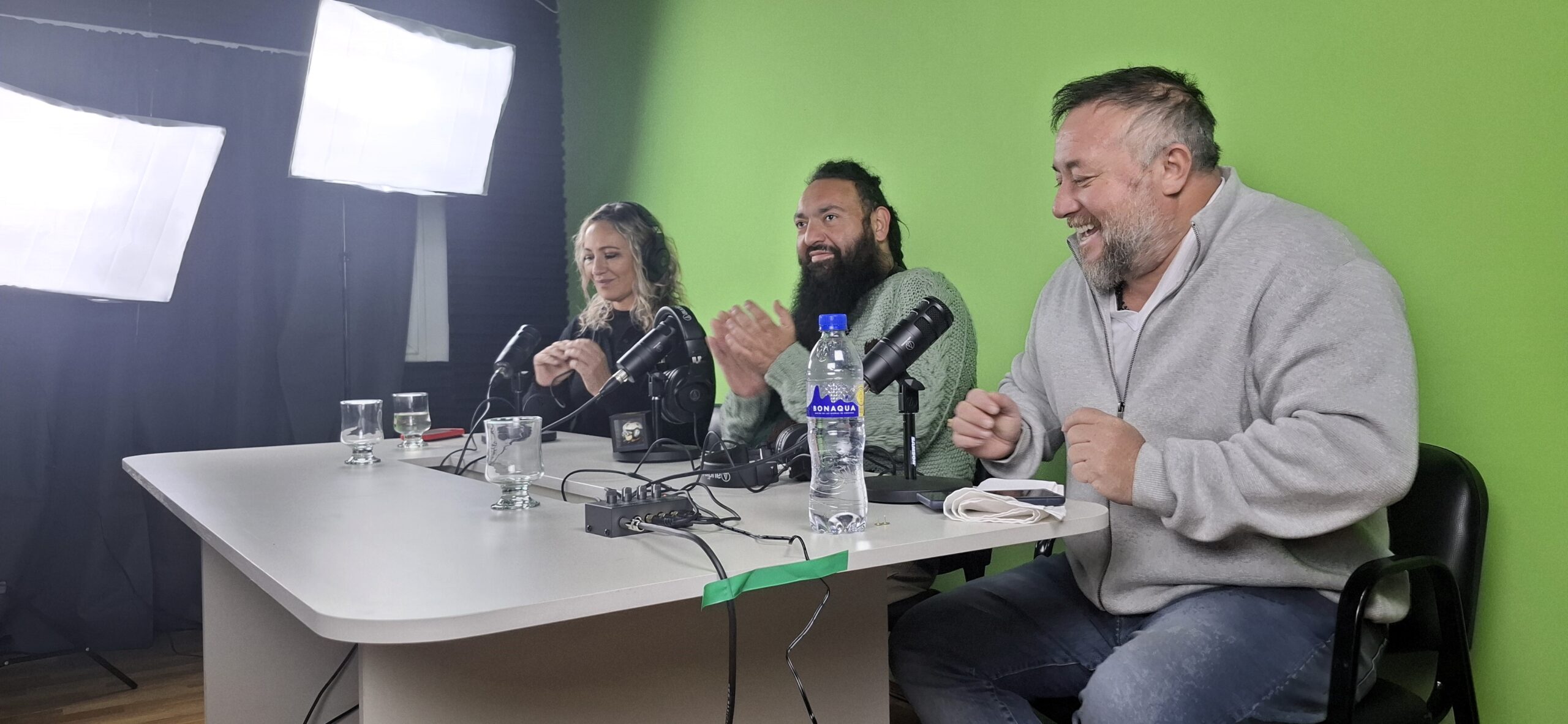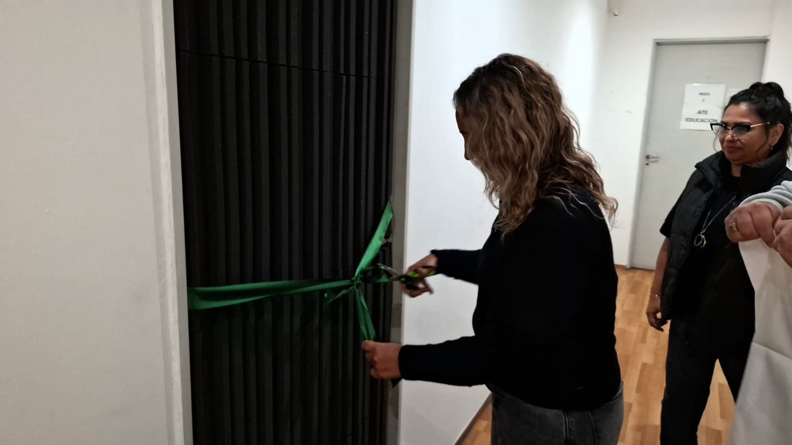 La primera transmisión comenzó a las 12.30 hs, tras cortar una cinta verde simbólica en el ingreso al flamante estudio que está ubicado en nuestra sede central, la cual entre aplausos y felicitaciones anticipó la placa conmemorativa del mismo: Estudio Audiovisual Compañero Roberto Macho.