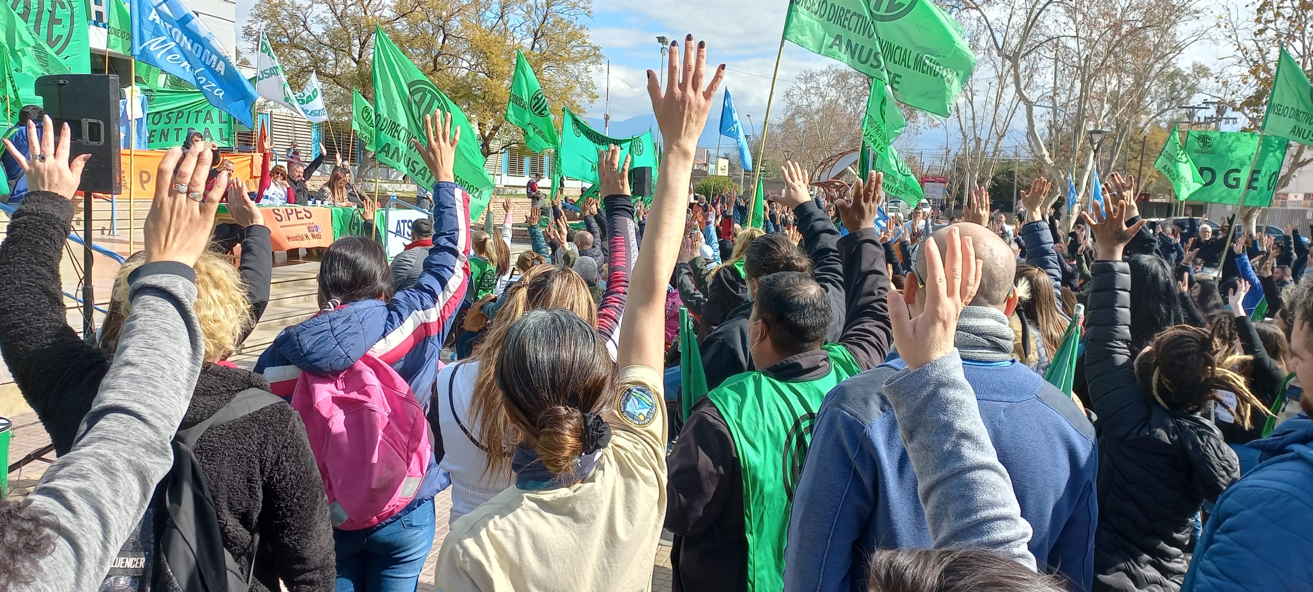 Expresamos un profundo rechazo a este nefasto accionar del gobierno de Rodolfo Suarez, como respuesta a la contundente Asamblea General de delegados y congresales del Frente Estatal, que realizamos hoy en el Hospital Notti, la cual decidió redoblar y continuar con las medidas de fuerza que llevamos adelante en cada lugar de trabajo, calles y rutas de la provincia de Mendoza, desde hace más de 50 días.