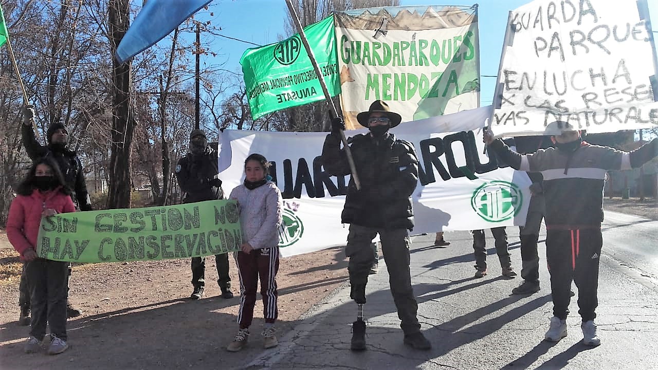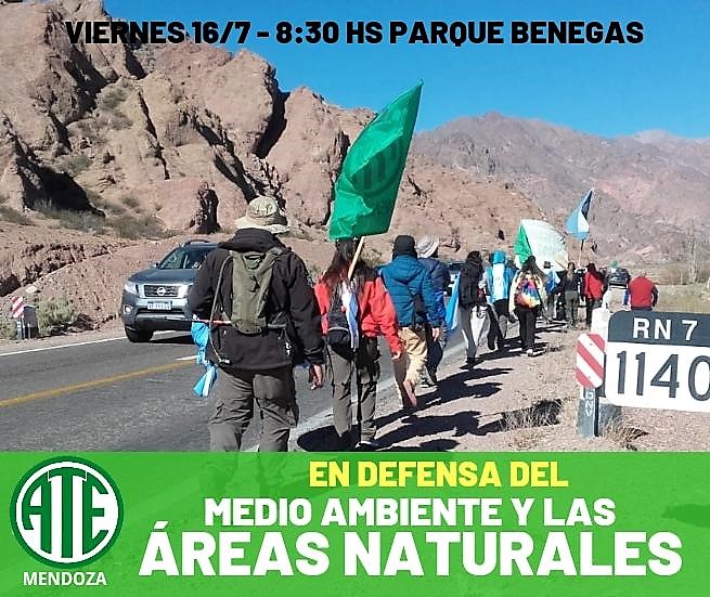 Trabajadores estatales luchan contra el vaciamiento paulatino que las distintas gestiones gubernamentales vienen aplicando en el sector encargado de resguardar las áreas naturales de la provincia de Mendoza. Con dignidad y esfuerzo, compañeros y compañeras marchan durante días desde el Parque Aconcagua hasta Casa de Gobierno para exigir mejoras en sus condiciones laborales. Este viernes 16 de julio nos concentraremos en el Parque Benegas de Godoy Cruz para abrazar a la Caminata por la Conservación y fortalecer los reclamos inmediatos que esta conlleva.