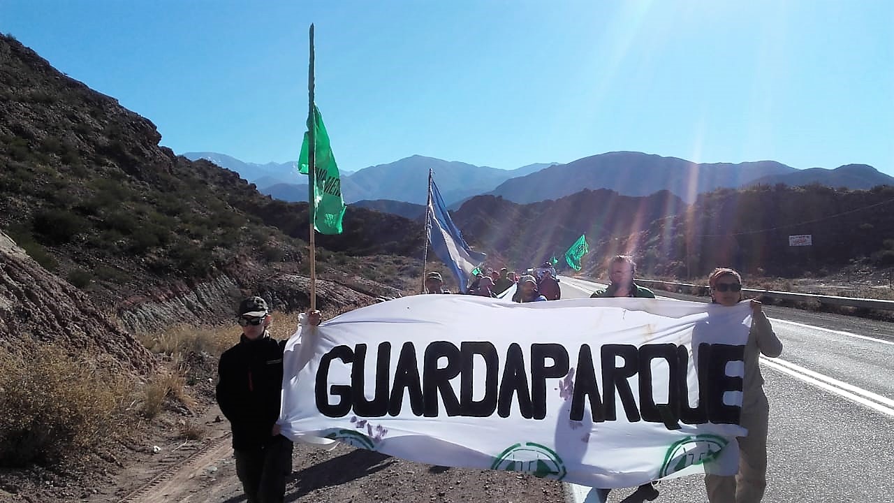 “Marchamos desde el martes 13 de julio en la base de Horcones al pie del Parque provincial Aconcagua con destino a Casa de Gobierno. Con nuestra lucha intentamos hacer conocer a la sociedad el vaciamiento que están sufriendo en estos últimos años las áreas naturales protegidas de Mendoza, tanto en las reservas como en las distintas seccionales. Actualmente tenemos cerrada la reserva de Caverna de las Brujas en Malargüe, la Quebrada de Matienzo en Aconcagua y la Quebrada de Vaca con sus seccionales. Marchamos también para visibilizar la realidad que estamos sufriendo los Guardaparques, peleamos por pases a planta, ya que tenemos compañeros contratados por temporadas, que van desde noviembre hasta el mes de marzo, como los de manera anual. Somos varios los Guardaparques que le pedimos al Gobierno que tenga consideración por nuestra labor. Sepan que defendemos y amamos nuestras reservas son bien de los mendocinos como de todas aquellas personas que quieren venir a visitarlas. Protegemos los bienes naturales de la provincia de Mendoza con los escasos recursos que tenemos. Les solicitamos a quienes tienen poder de decisión que por favor mejoren nuestra calidad laboral y pongan énfasis en la conservación de las áreas naturales de la provincia, que son varias y todas están sufriendo un vaciamiento sistematizado en los últimos años. Apelamos a la buena voluntad de todas las personas que tienen que tomar esta decisión en beneficio y en pos de las futuras y actuales generaciones. Además, le recordamos al Gobierno que gracias a las áreas naturales protegidas y a todo el entorno natural es que en Mendoza podemos subsistir”, advirtió Nancy Roldán, trabajadora Guardaparque.
