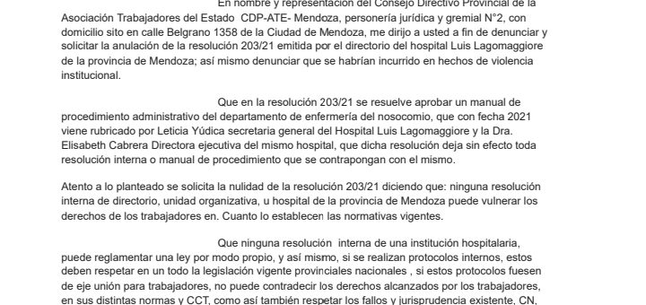 Formalizamos graves denuncias contras las autoridades del Hospital Lagomaggiore