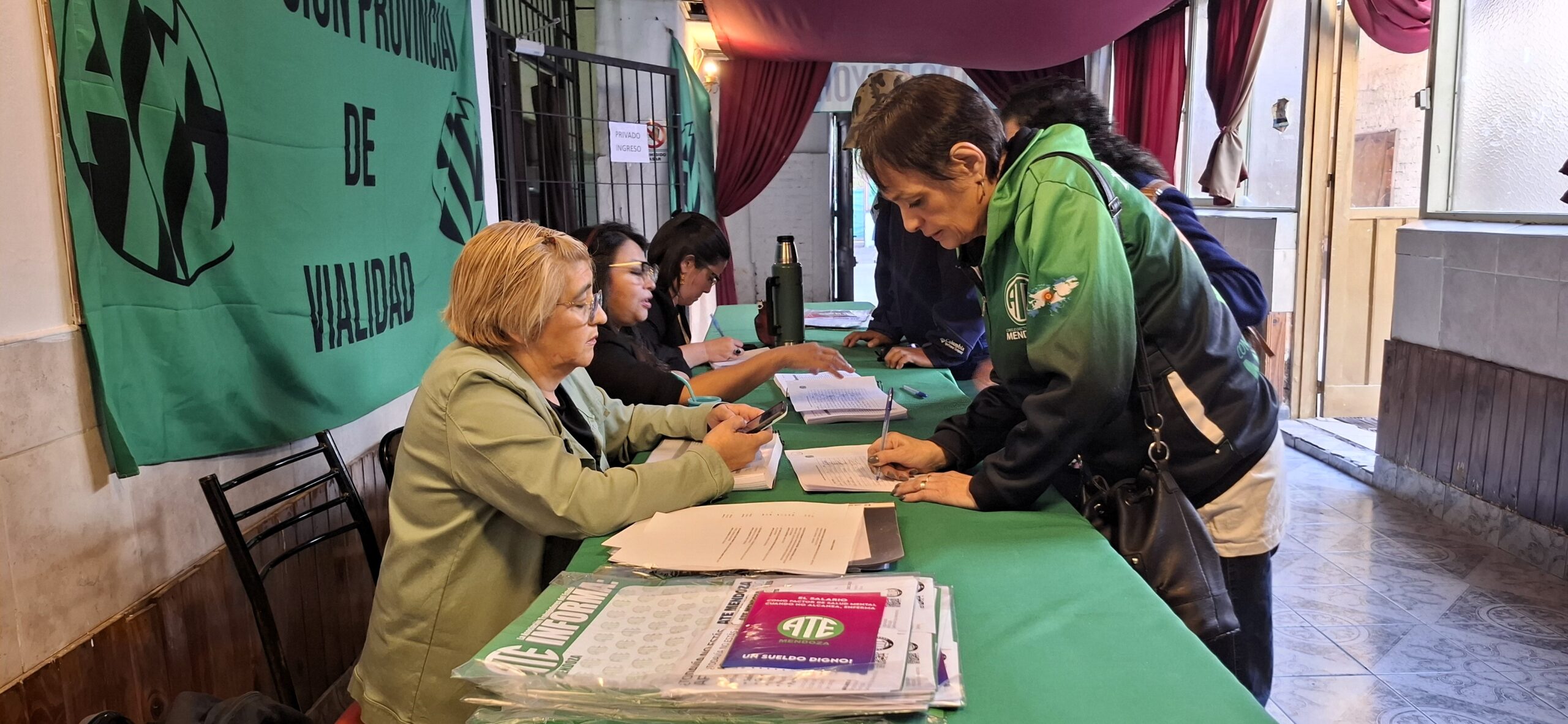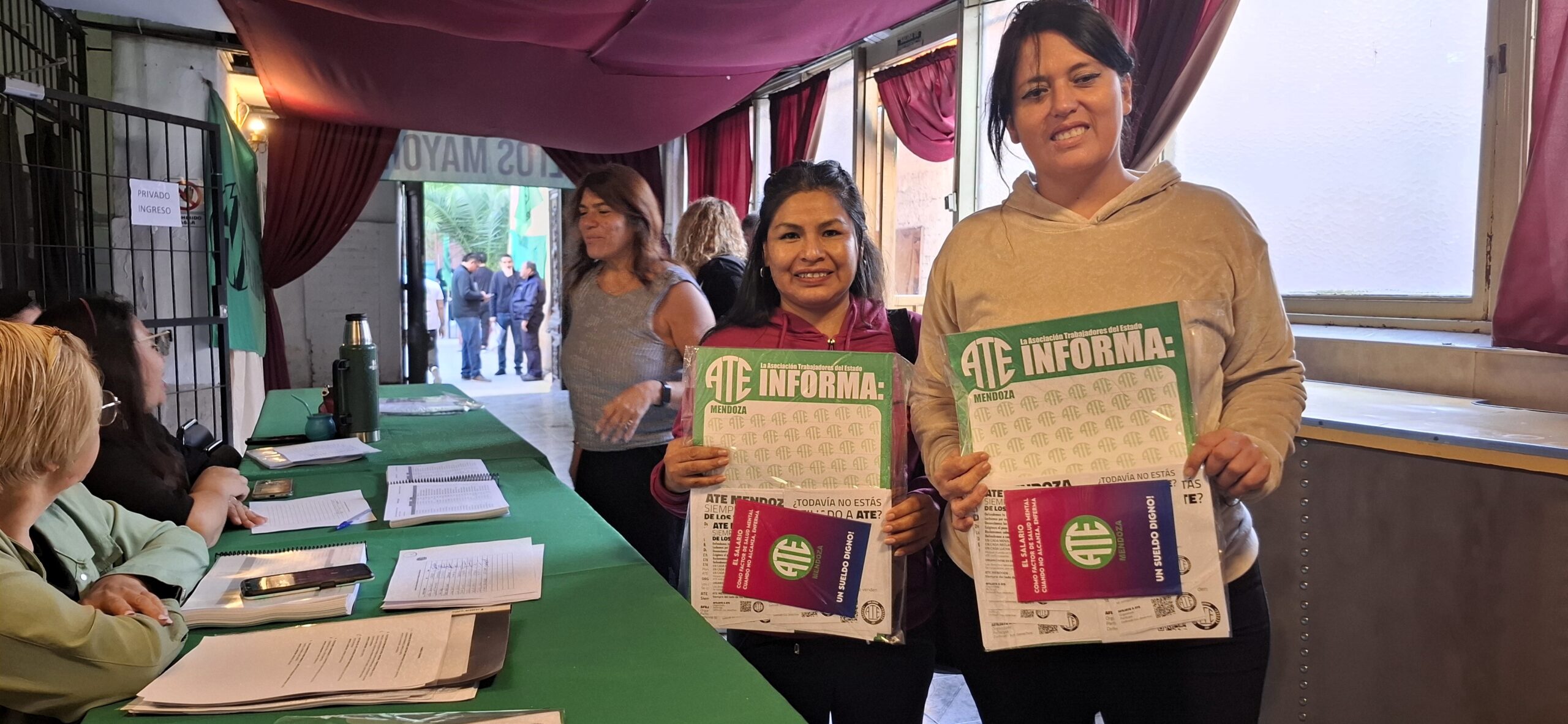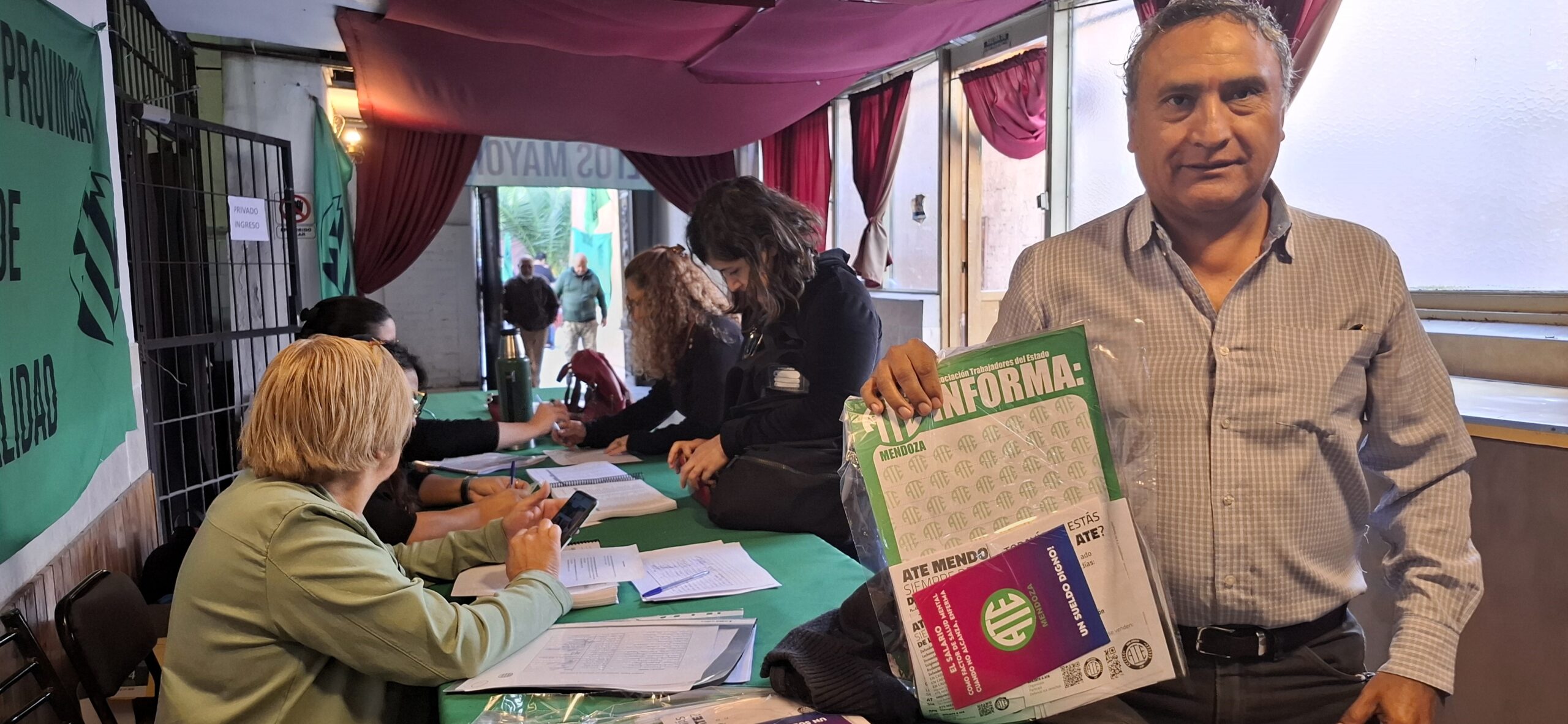 La jornada de este jueves 26 de marzo concentró a más de 400 compañeras y compañeros afiliados del Consejo Directivo Provincial de ATE Mendoza, correspondientes a los lugares de trabajo de Capital, Godoy Cruz, Lavalle, Maipú, Guaymallén y Las Heras, en el Salón de Eventos del Club Sirio de Mendoza, para elegir a los más de 260 nuevos congresales, que participarán del Congreso Provincial que realizaremos en el mes de abril.